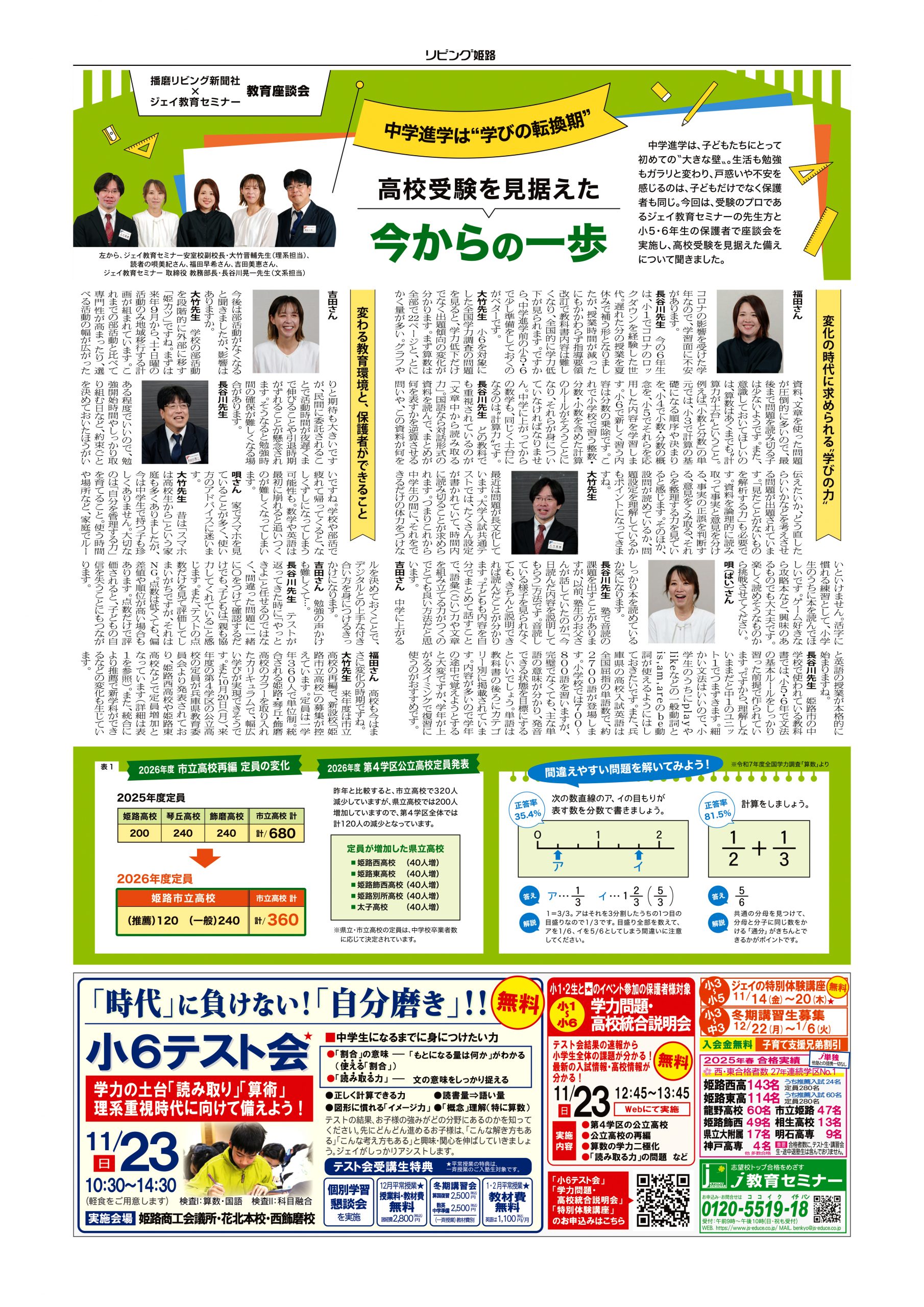 『リビング姫路 11月7日号』に「教育座談会」が掲載されました