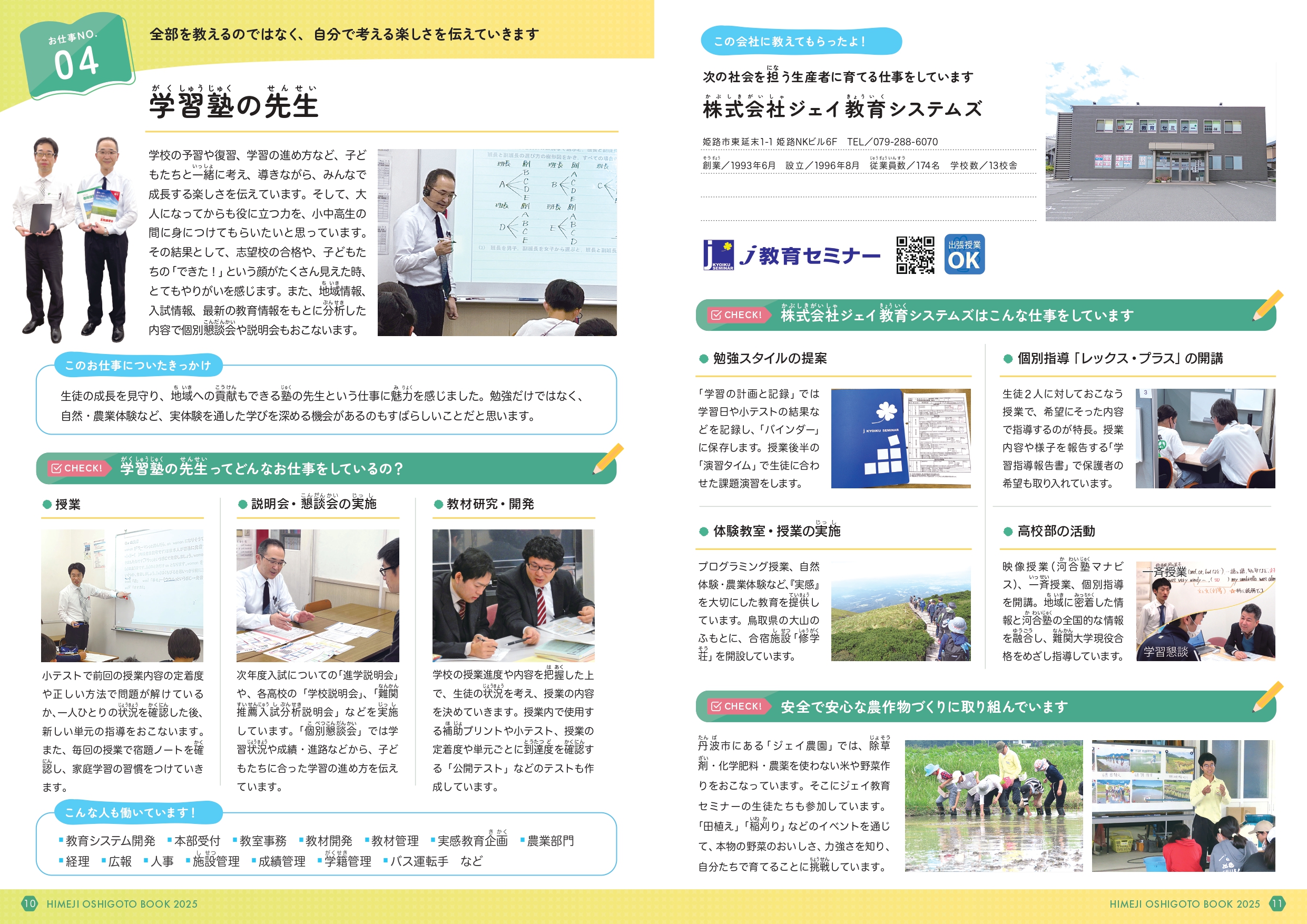 姫路市の小学5年生に配布される副教材『姫路市のおしごと本2025』に、ジェイ教育セミナーが掲載されました!2025年11月から小学校を通じて配布され、地域の仕事や働く人々について学ぶ職業学習の際に副教材として活用されます。