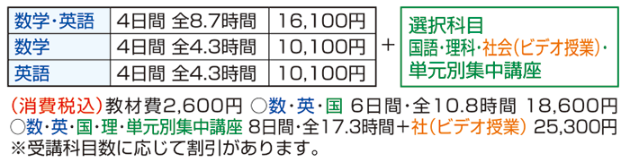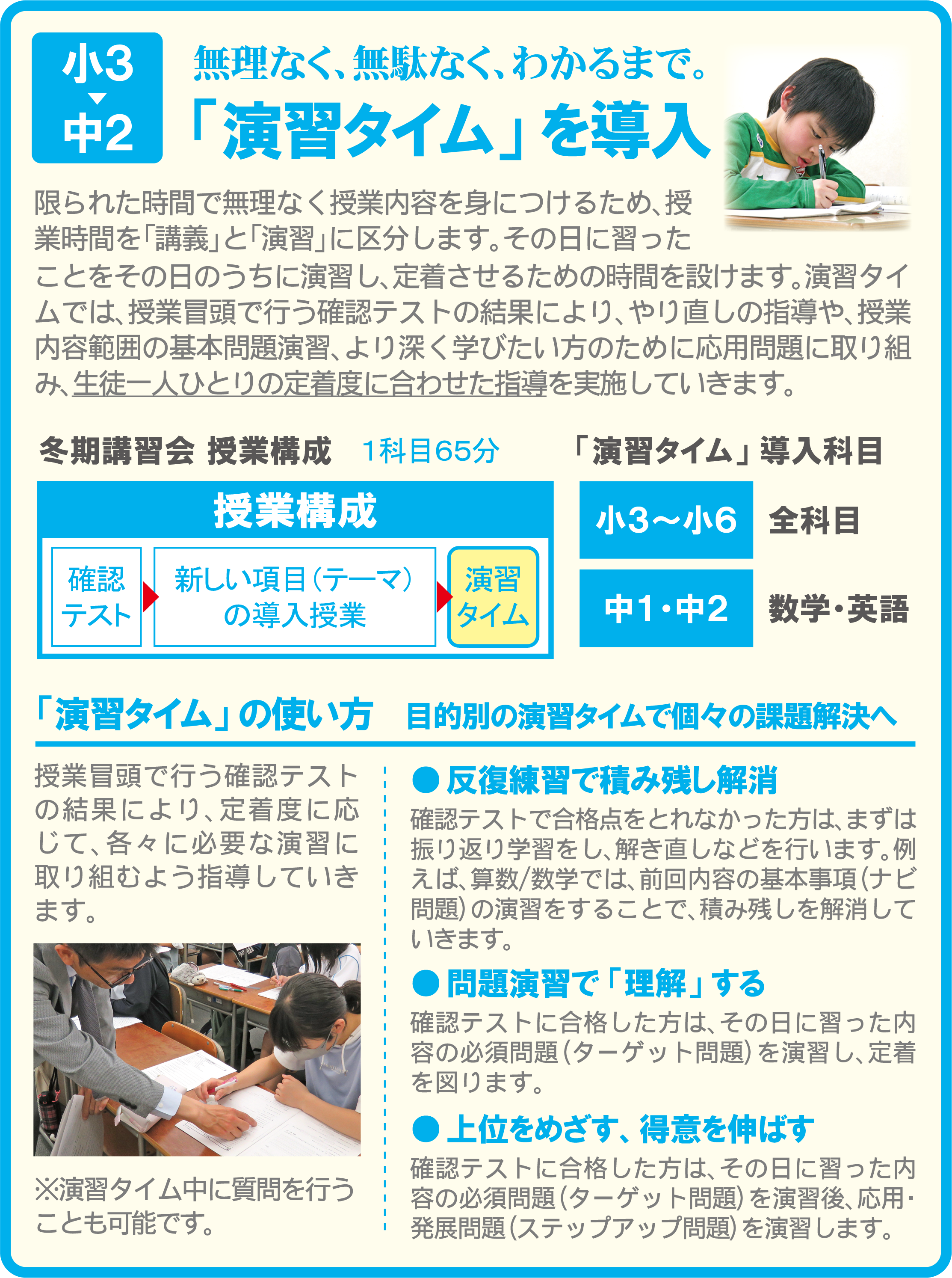 学年の重要項目となる2学期後半から3学期内容を集中学習