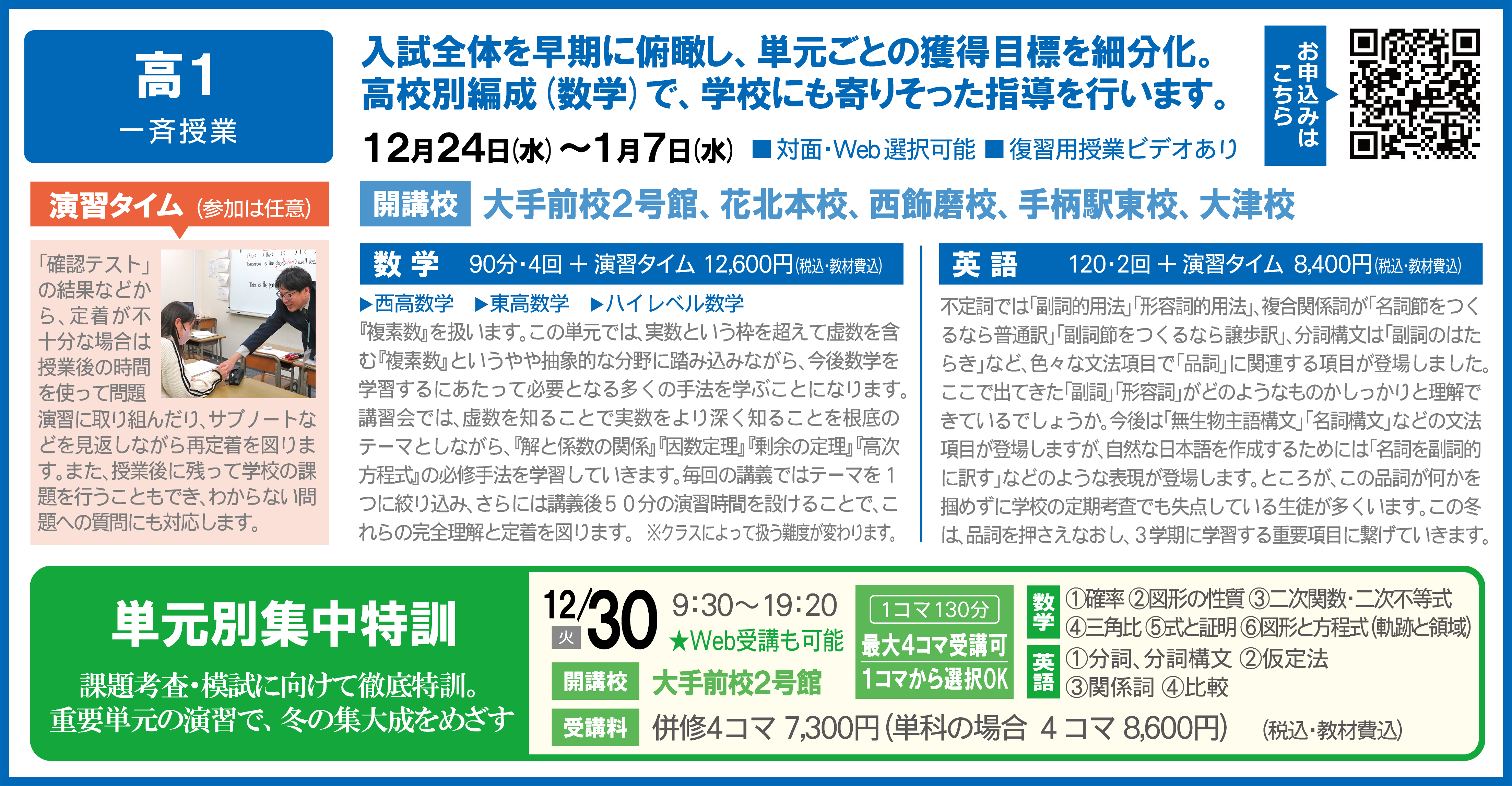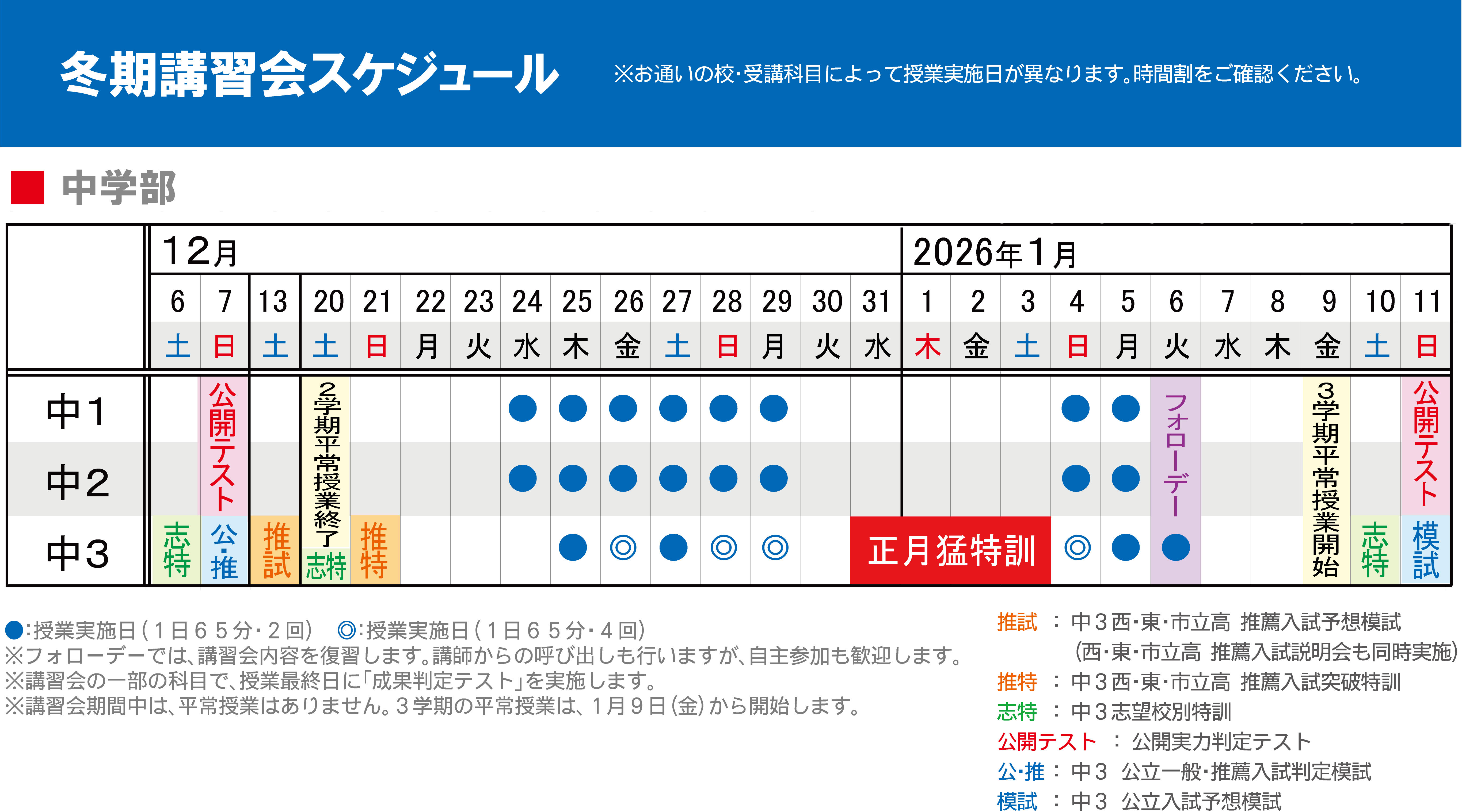 学年の重要項目となる2学期後半から3学期内容を集中学習
