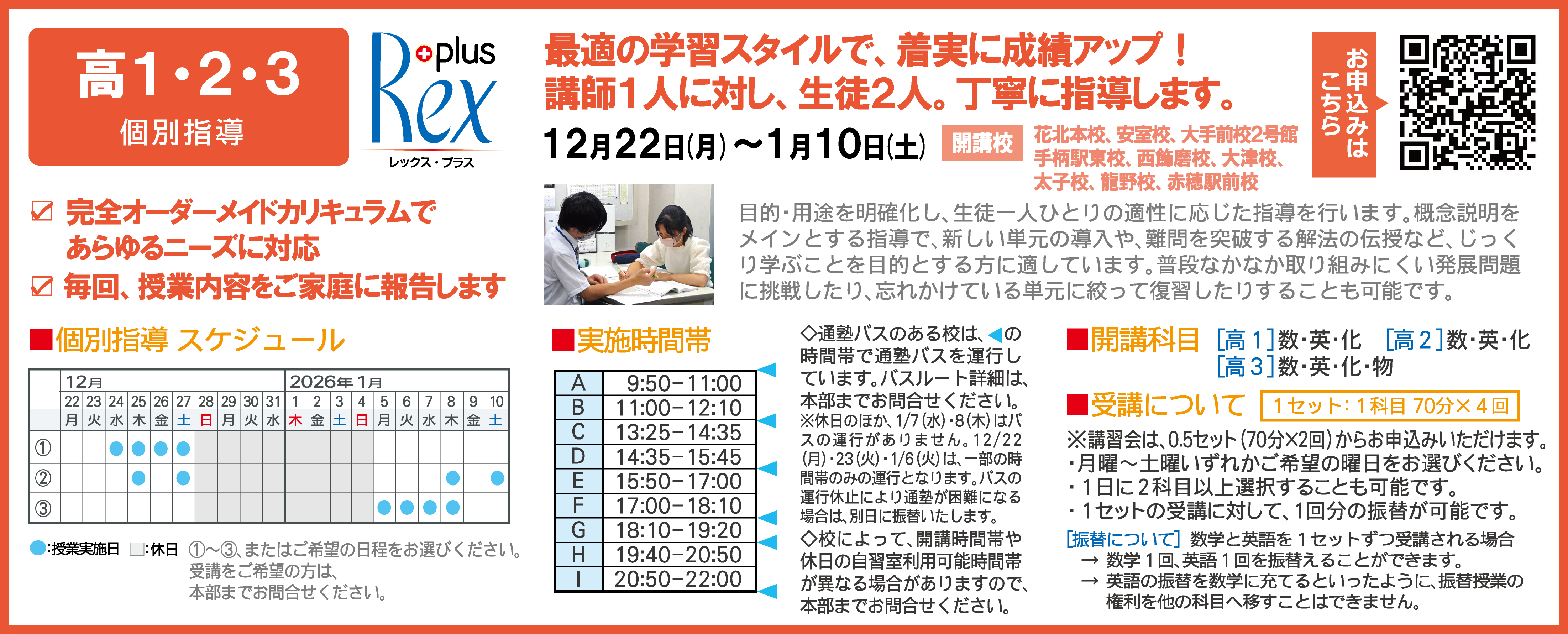 ※土曜日の午前中など、日時は調整できる場合があります。お気軽に本部へお問合せください。